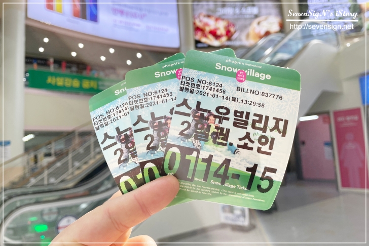 스노우 빌리지 입구인데요, 들어가서 오른쪽에 보면 티켓을 받는 직원분들이 있습니다.