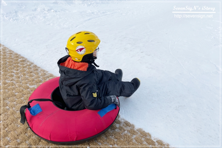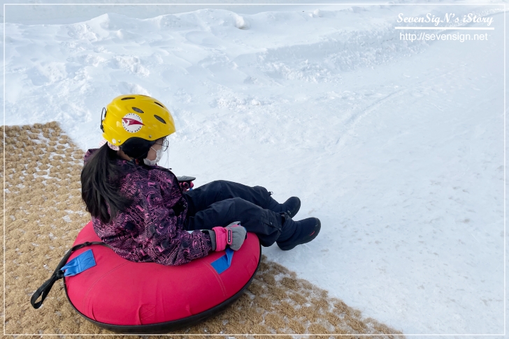 이 눈썰매는 튜브가 아닌 1인용 튜브를 타고 내려오는 거거든요.