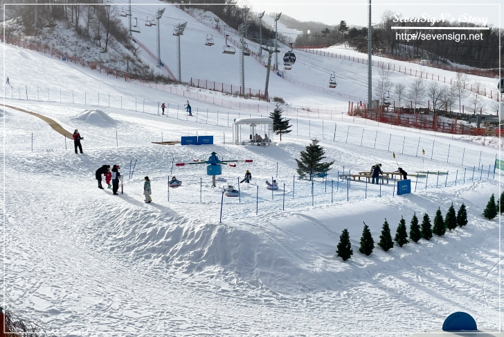 올라가면서는 오른쪽으로 이미 눈썰매등을 타며 스노우 빌리지를 즐기고 있는 사람들을 볼 수 있습니다.