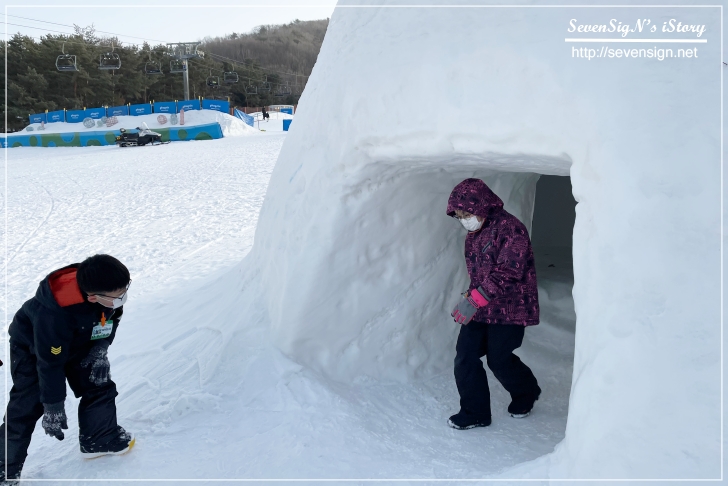 스노우 빌리지는 온가족이 함께 즐길 수 있는 곳이라 휘닉스 평창에 갔다면 꼭 가보세요~