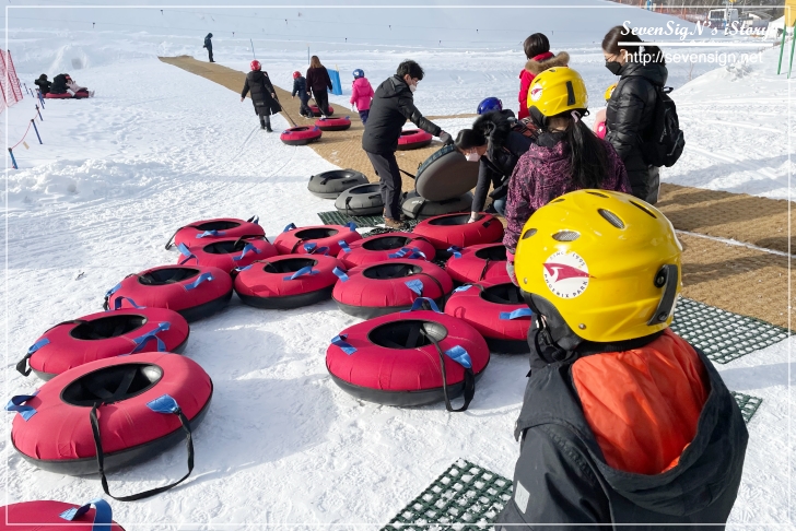 이 눈썰매는 튜브가 아닌 1인용 튜브를 타고 내려오는 거거든요.