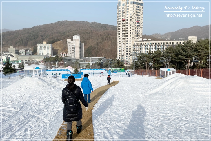 올라가면서는 오른쪽으로 이미 눈썰매등을 타며 스노우 빌리지를 즐기고 있는 사람들을 볼 수 있습니다.