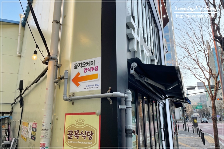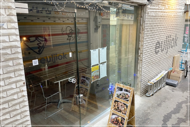 골목 쪽으로 들어가서 왼쪽을 보면 벽에 euljiok라고 쓰여있기도 하고,