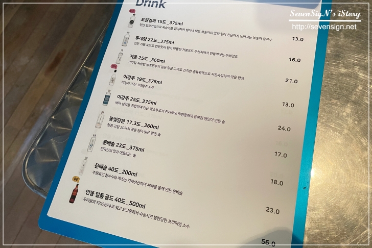 우선 물과 음료~ 술은 뭐로 할지 메뉴판을 좀 보기로 했죠 ㅋ