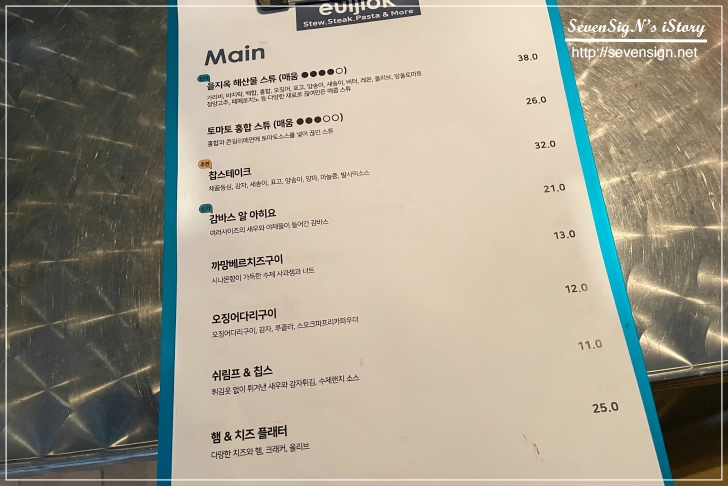 우선 을지옥 해산물 스튜를 하나 골랐고,