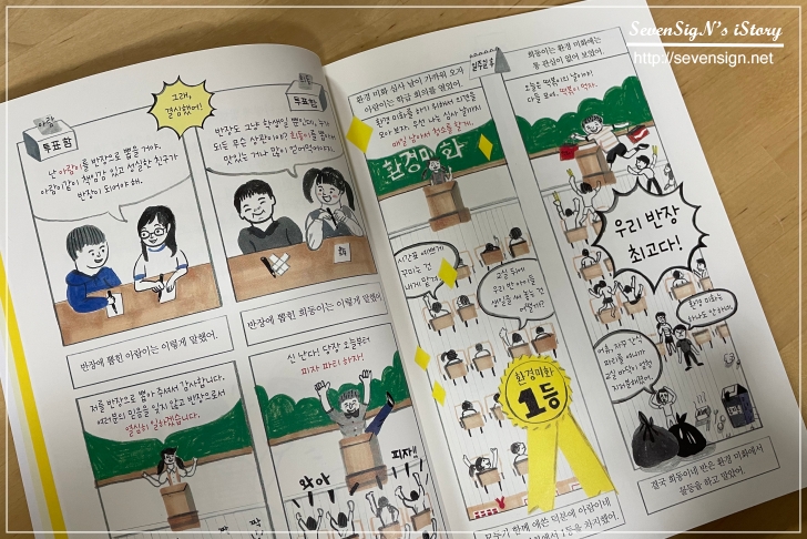 예를 들어 민주주의 편에서는 아이들이 이해하기 쉬운 사례를 통해