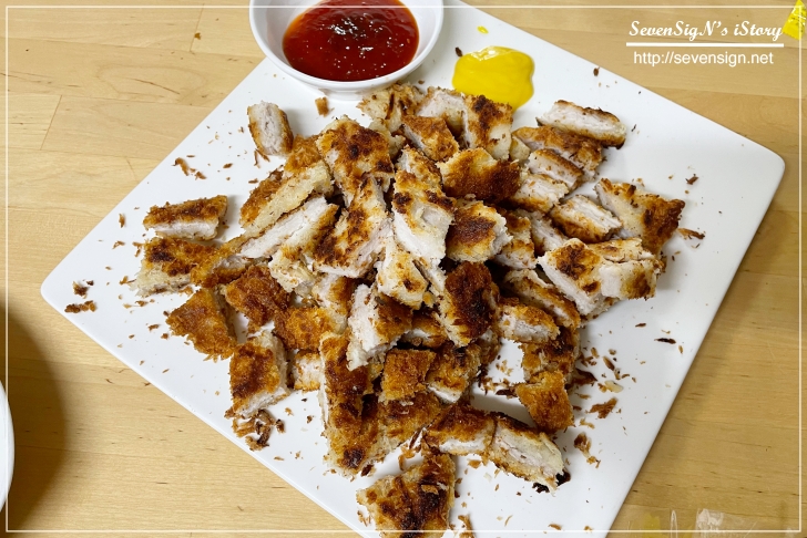 먹기 좋게 잘라놓으니 더 많은 것 같고 빵가루들 뿌려진게 더 보기 좋네요 ㅋ