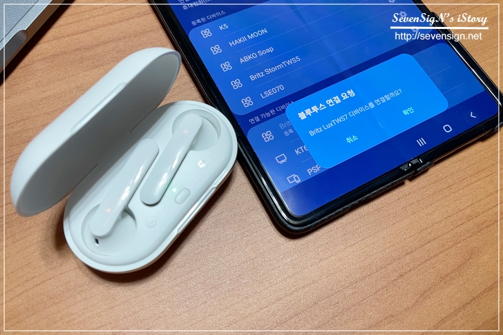 케이스를 열면 자동으로 페어링 모드로 됩니다. 그래서 스마트폰의 블루투스 연결 화면으로 가면 바로 연결 요청을 확인할 수 있고 쉽게 연결할 수 있습니다. 그리고 한번 페어링 후에는 다음 부터 이어폰을 꺼내면 자동으로 연결되기 때문에 편하게 이용할 수 있죠.