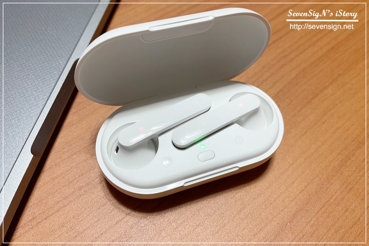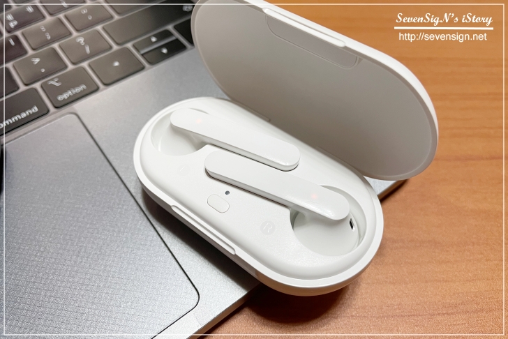 패키지를 오픈하면 이어폰과 역시 화이트 컬러인 충전케이스를 확인할 수 있습니다. 딱 꺼내면서 드는 생각이 선물용으로도 괜찮겠다 싶더라구요. 가격도 선물로서 무난하고 이어폰 필요한 주변 친구가 있다면 골라볼만한 것 같습니다.