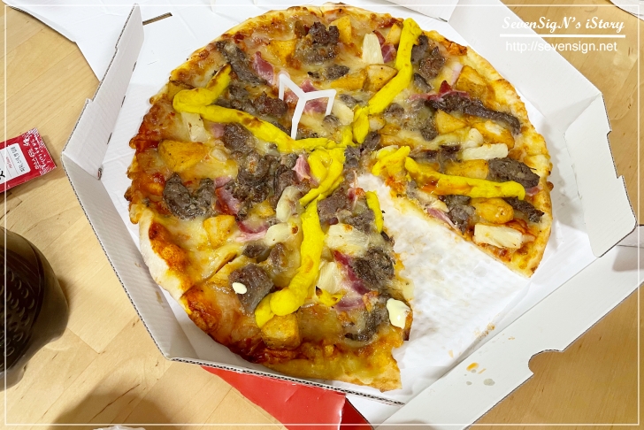 스테이크, 베이컨, 파인애플 등등 좋아하는 것만 올라가 있어서 더 맛있게 먹을 수 밖에 없는 ㅋ