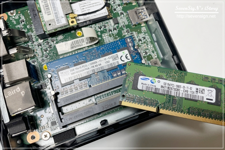 램은 꼭 추가할 필요는 없는데, 램은 다다익선이라 마침 집에서 놀고 있던 램을 하나 추가로 끼웠습니다. 1기가 짜리라 기본 2기가랑 합쳐서 3기가가 램을 장착하게 되었습니다.