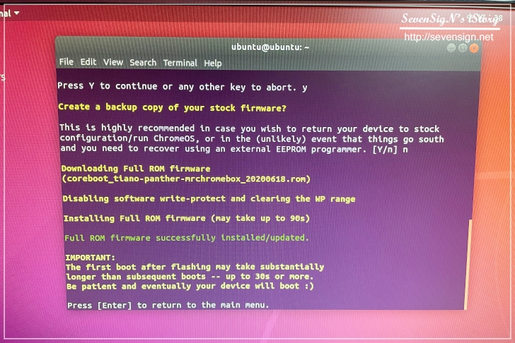여기까지 왔으면 거의 다 된건데요, 6을 누르고 Y를 입력합니다. 현재 펌웨어를 백업하는 걸 권장하는데, 전 안되서 걍 패스했네요 ㅎ 그리고 P를 눌러서 전원을 끕니다.