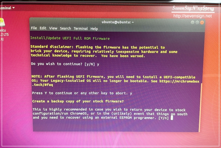 이전 포스팅에서 power off 를 입력하는 것 까지 했다면 크롬박스가 꺼져있을텐데요, 우분투 디스크를 끼우고 크롬박스의 전원을 켭니다. 그러면 우분투로 부팅이 됩니다.