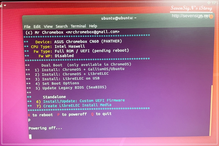 여기까지 왔으면 거의 다 된건데요, 6을 누르고 Y를 입력합니다. 현재 펌웨어를 백업하는 걸 권장하는데, 전 안되서 걍 패스했네요 ㅎ 그리고 P를 눌러서 전원을 끕니다.