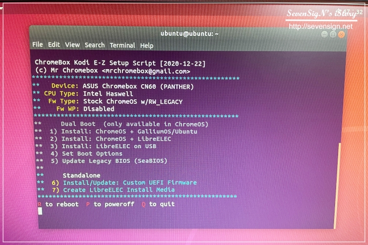 이전 포스팅에서 power off 를 입력하는 것 까지 했다면 크롬박스가 꺼져있을텐데요, 우분투 디스크를 끼우고 크롬박스의 전원을 켭니다. 그러면 우분투로 부팅이 됩니다.