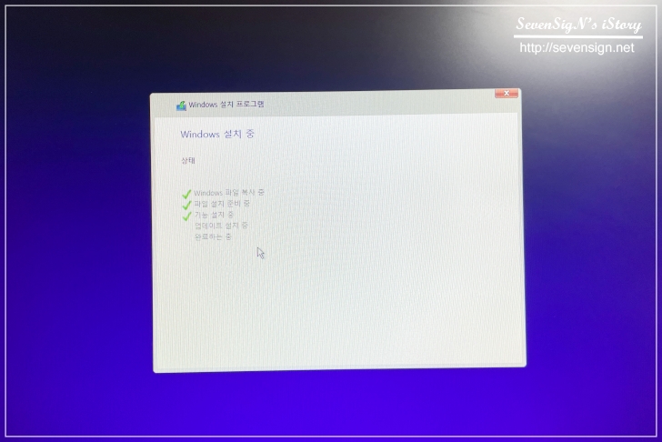 감격의 윈도우 설치 화면이 뜨네요...ㅠ