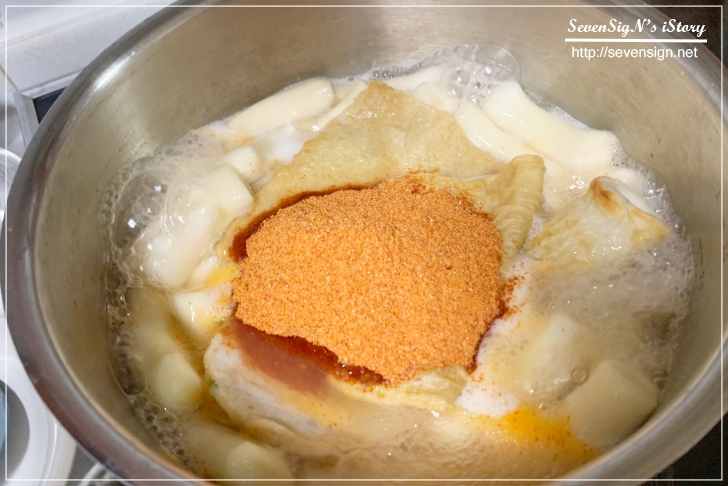 떡과 어묵과 분말스프를 넣고 더 끓여주기만 하면 됩니다.