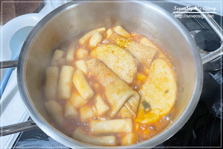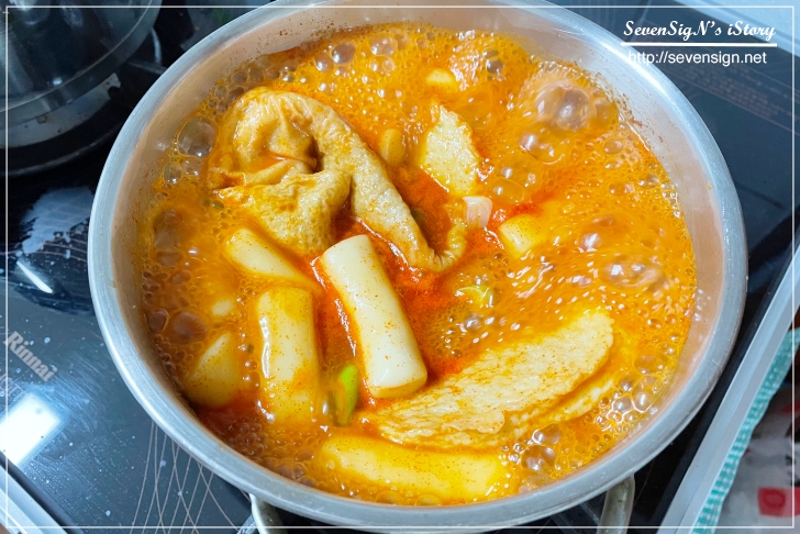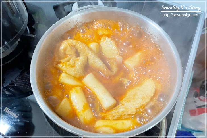 어느 정도 끓이면 물이 졸아들고 맛있는 떡볶이의 자태를 확인할 수 있습니다.