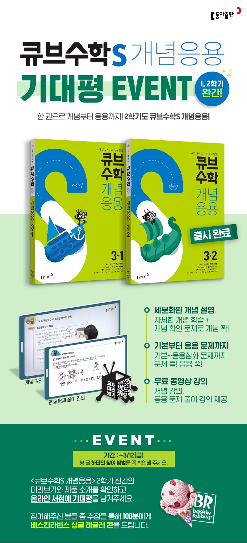[이벤트] 「큐브수학S 개념응용」 2학기도 출시 완료! 1~2학기 완간 기념 이벤트 (~3/12, 금)