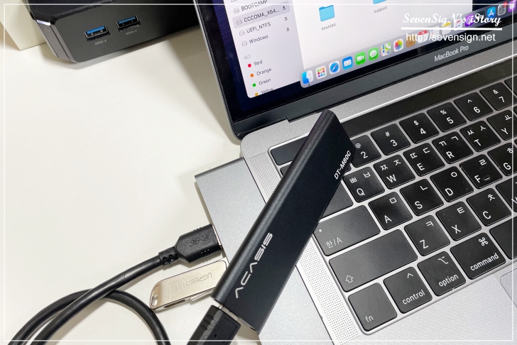 어쨋든 이렇게 맥북 멀티포트 허브를 연결하고 나니 방황하던 USB 3.0을 연결할 수 있게 되었습니다. 살짝 인식된 파인더의 모습도 보이죠?