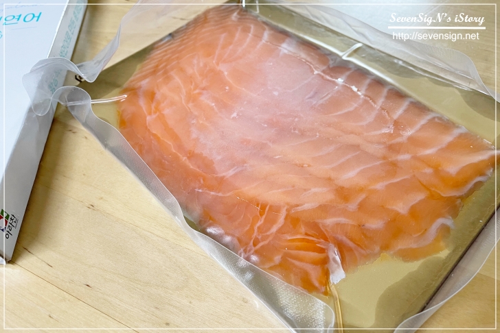 항공직송 생연어로 만든 훈제연어는 여러장으로 포개져있는 상태로 포장이 되어 오는데요,