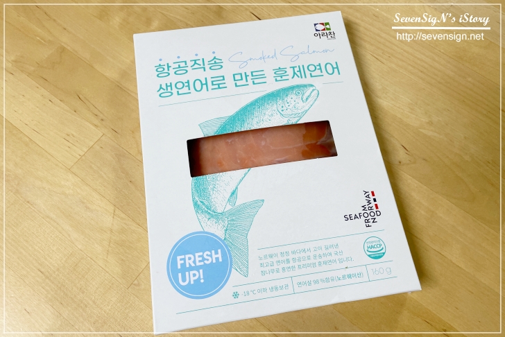 '항공직송 생연어로 만든 훈제연어'는 이름처럼 노르웨이 청정 바다에서