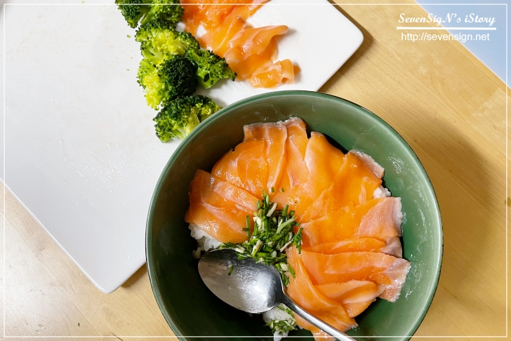 연어만 적당히 잘라서 올려주면 그 자체만으로도 아주 훌륭해지는 덮밥이 되어주죠~
