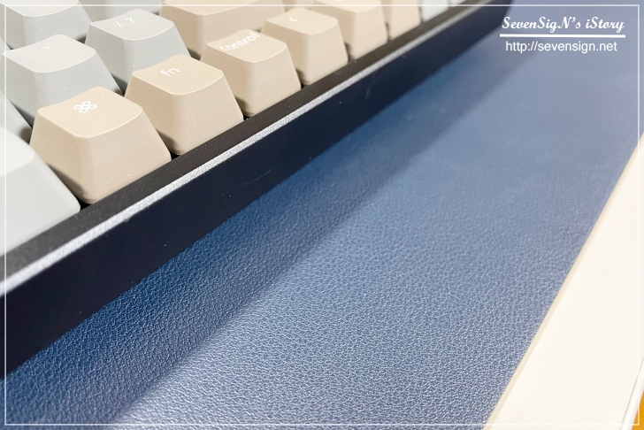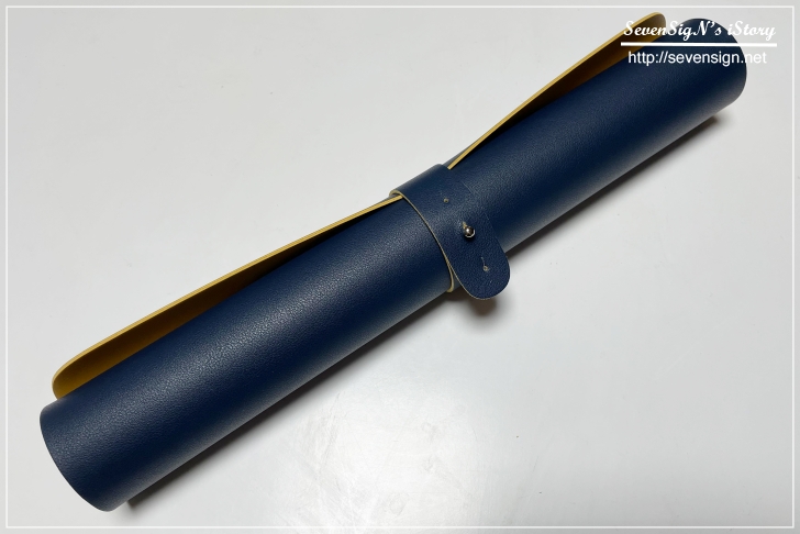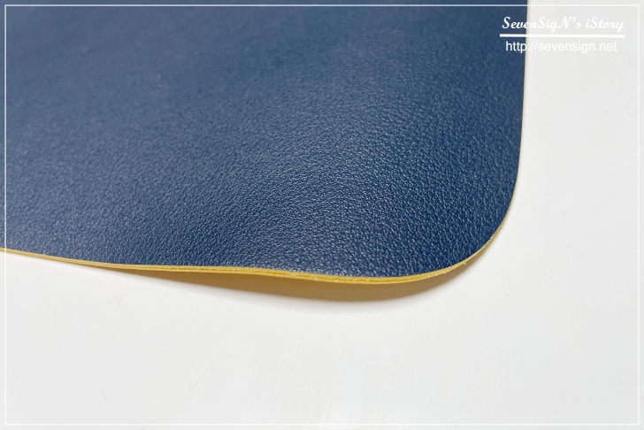 레더 와이드 데스크매트는 양면 사용가능한 투톤컬러의 양면이 있고, 바닥 미끄럼방지 처리된 단면이 있습니다. 전 그중에서 양념으로 골랐고 컬러는 네이비/옐로우로 선택을 했습니다. 사이즈는 800mm x 400mm인데요 사용하기에 넉넉한 사이즈입니다. 보통 마우스 장패드가 700~800mm x 300mm 정도 되는데, 레더 와이드 데스크 매트는 세로길이도 넉넉한 편이죠.