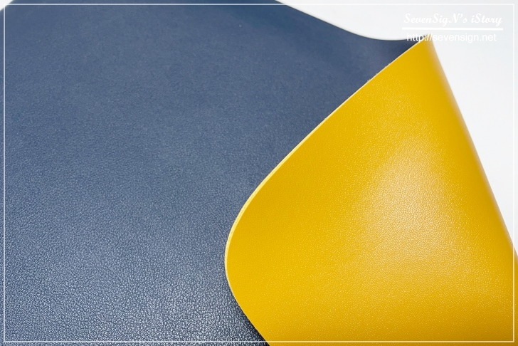 말씀드린대로 양면이라 반대편은 제가 선택한 옐로우 컬러입니다. 사용하다가 한쪽이 오염됐다거나 눈에 띄는 스크래치로 거슬린다면 뒤집어서 사용해도 좋을 것 같습니다. 그래서 양면으로 골랐거든요. 사실 블랙/레드 하고 고민을 좀 하기도 했습니다. 베터이앤아이 레더 와이드 데스크매트는 3가지 종류가 있는데 취향따라 골라보시면 될 것 같습니다.