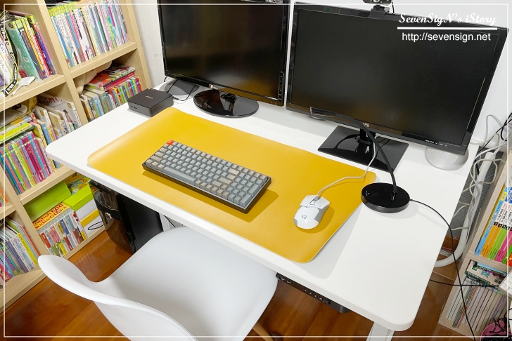 데스크매트 하나만으로 책상 분위기가 확 달라진 모습인데요, 여러가지 기능적인 측면에서도 없을 때보다 훨씬 좋아진 것 같습니다. 책상의 오염도 막아주고 정리정돈된 느낌이라 잘 고른 것 같습니다.