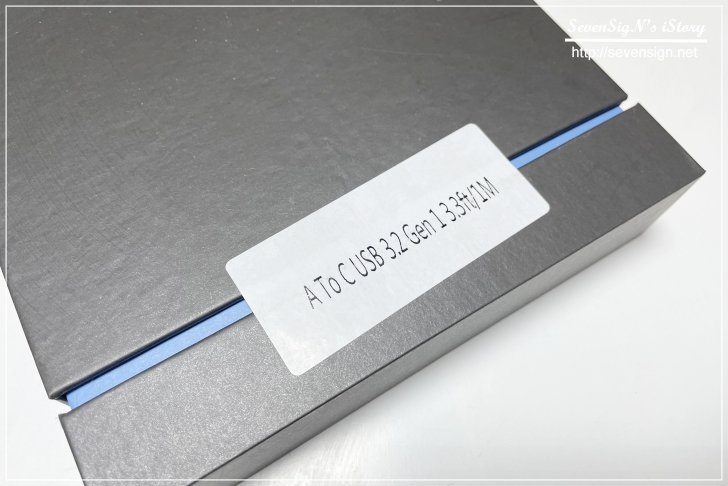 밀봉 스티커에는 케이블의 용도와 길이가 표시되어 있습니다. 개봉하기 전에 주문한 케이블이 맞는지 한번 확인하면 좋을 것 같네요. 제가 주문한 케이블은 한쪽은 USB-A 타입이고, 한쪽은 USB-C 타입인 1미터짜리 케이블이었습니다.