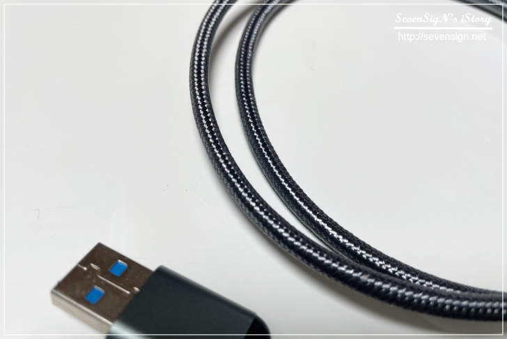 케이블은 직물구조 타입으로 되어 있어서 꼬임방지에도 좋고, 고급스러워 보이는 점도 마음에 듭니다.