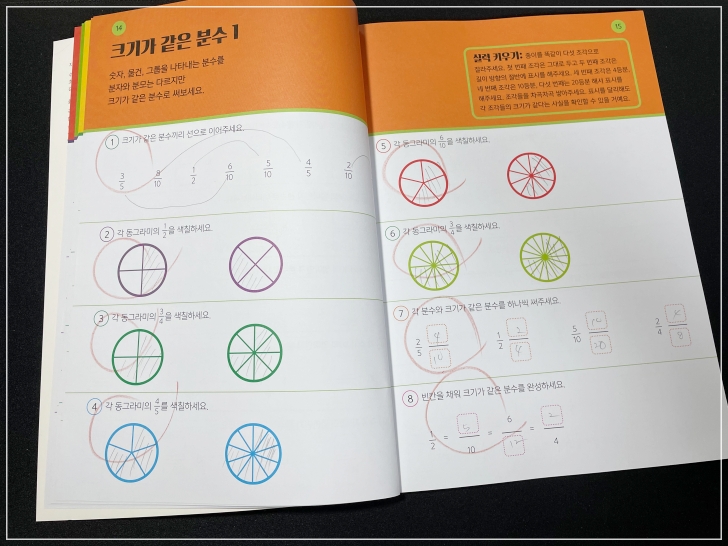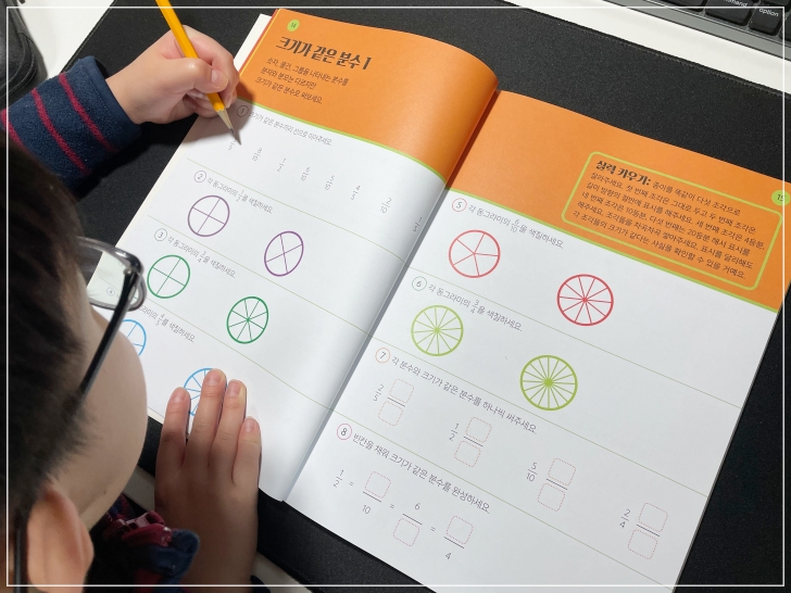 같은 도형이지만 다르게 같은 분수이지만 다른 숫자로 풀어볼 수 있도록