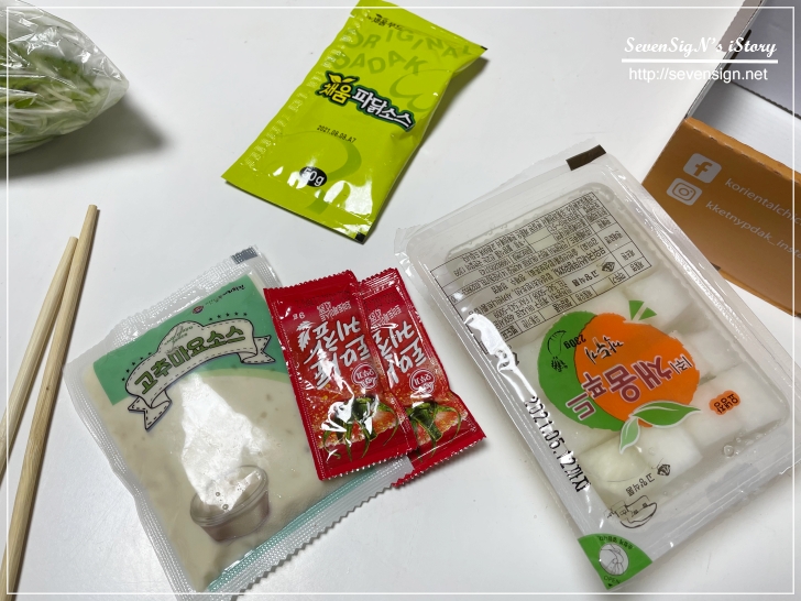 다시 한번 살펴보자면~ 고추마요소스, 토마토케첩, 무, 그리고 파닭소스가 있고요,