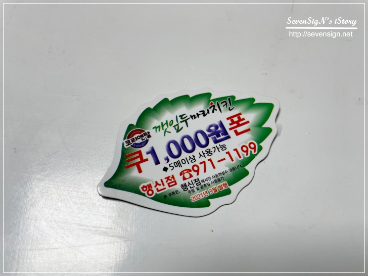 코리엔탈깻잎두마리치킨 이름에 어울리는 천원짜리 쿠폰~