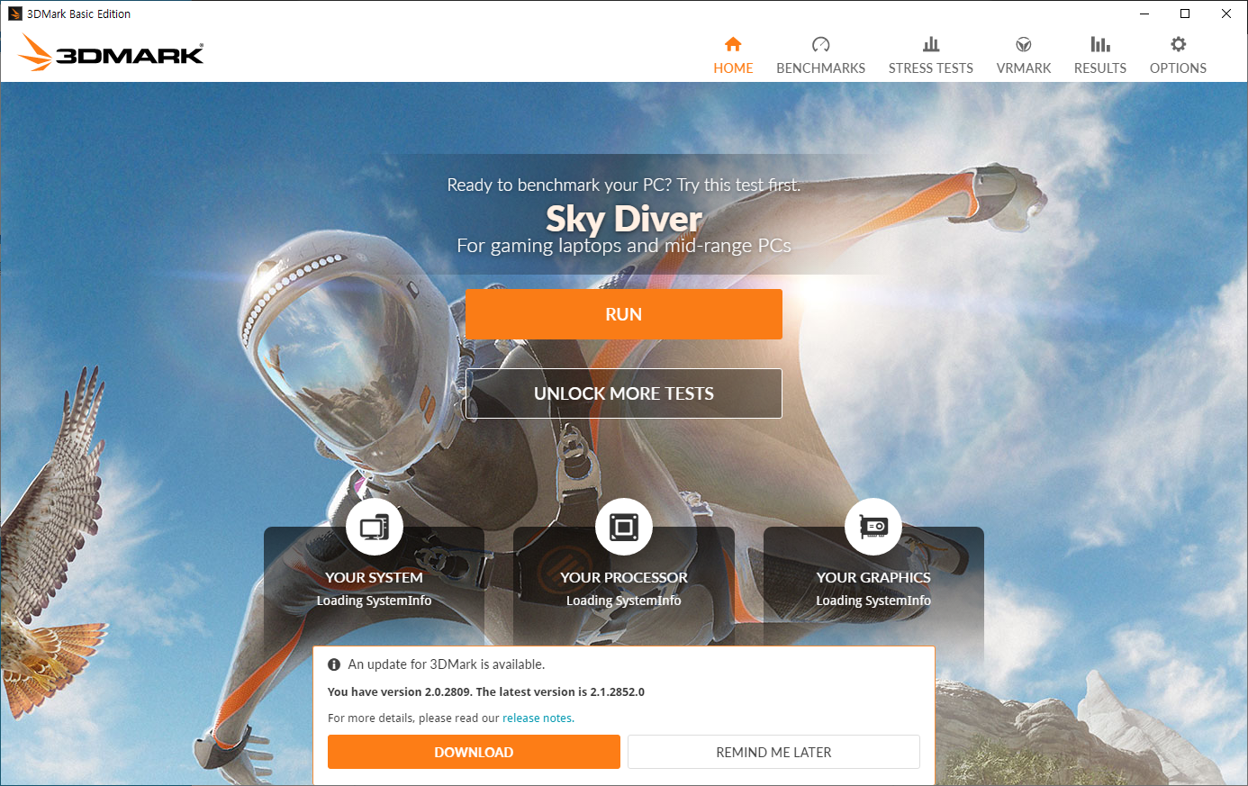 언제 출시된 버전인지는 모르겠지만 이때는 Sky Diver 라는 영상으로 테스틀 하더라구요.