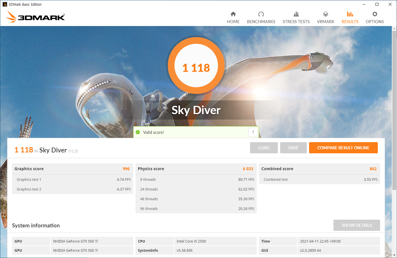 확실히 두대를 돌리니까 996점으로 더 잘나오긴 하더군요.