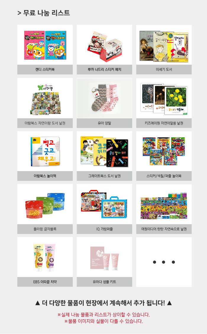 아이들이 좋아할만한 물품들이 준비되어 있으니
