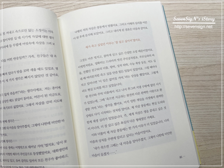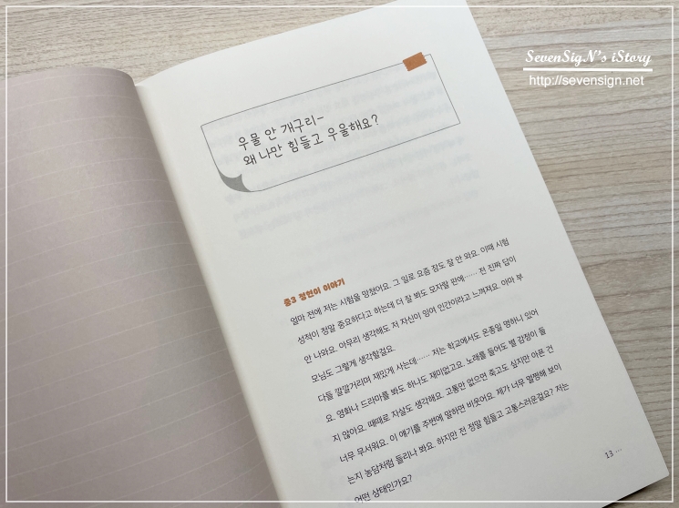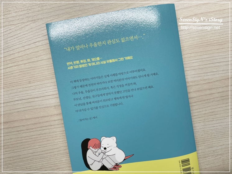 그래서 이 책 '사춘기라 그런게 아니라 우울해서 그런거예요'은 저자와 상담을 하는 듯한 느낌을 받게 되더라구요.