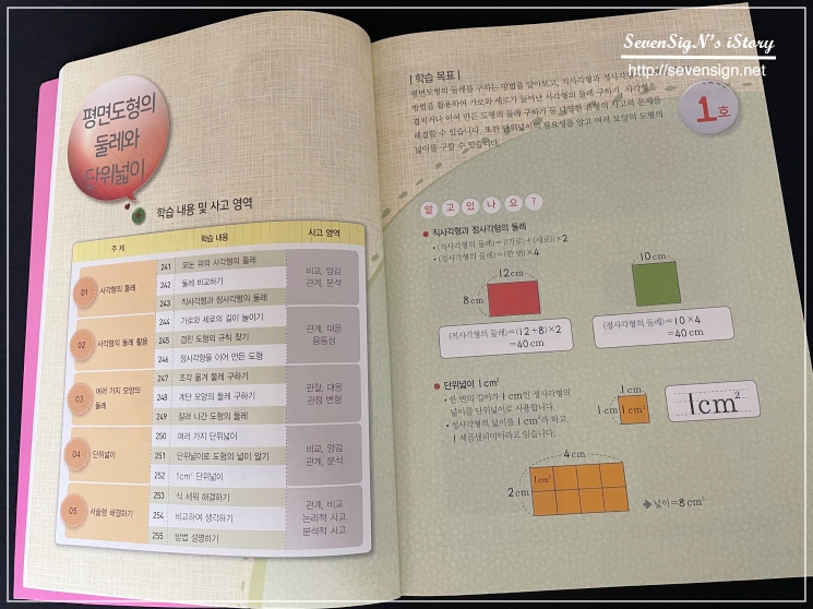 첫번째 학습 내용은 평면도형의 둘레와 단위넓이 였거든요.