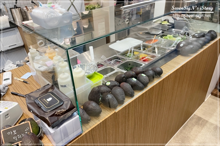 많은 아보카도 그리고 신선하고 다양한 샐럭드가 준비되어 있는데요,