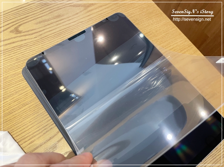 부착 후에는 전면부의 보호비닐도 제거를 해줍니다. 그래야 종이질감을 제대로 경험할 수 있거든요.