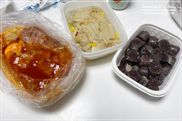 개봉하는 순간 맛있는 양념의 맛쟁이떡볶이와 윤기 좔좔 하르는 순대,