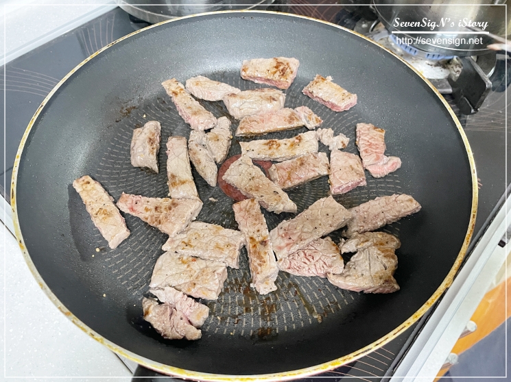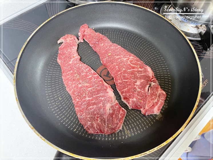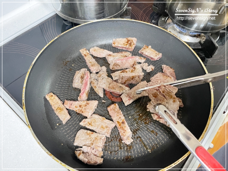채끝은 후라이팬에 올리고 그냥 구워주면 되니까 더 간편하긴 하죠 ㅋ
