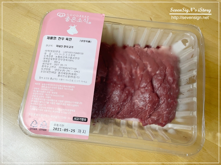좋은소식 한우에서 육전용 고기로 준비되어 있는 고기를 사용하니까