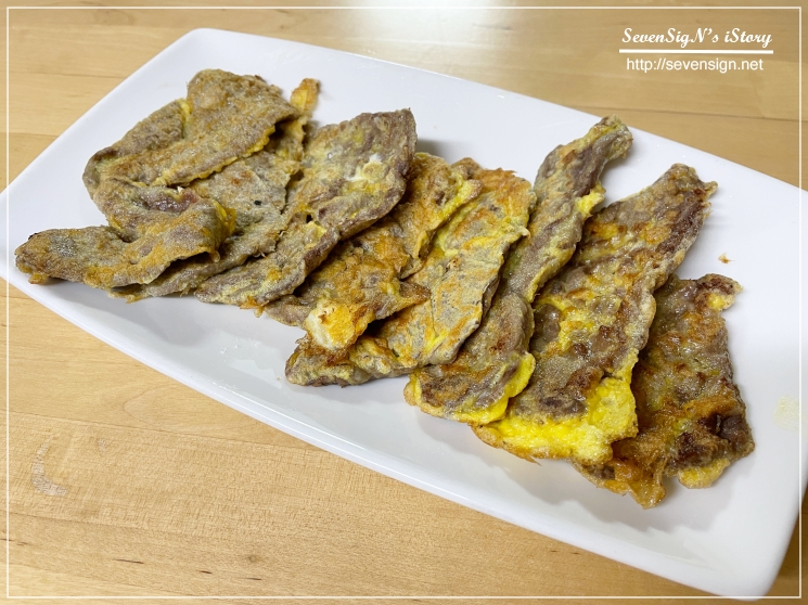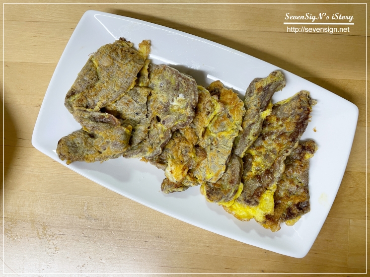 이렇게 해서 먹음직스러운 육전 준비 완료~