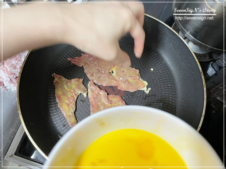 좋은소식 한우에서 육전용 고기로 준비되어 있는 고기를 사용하니까