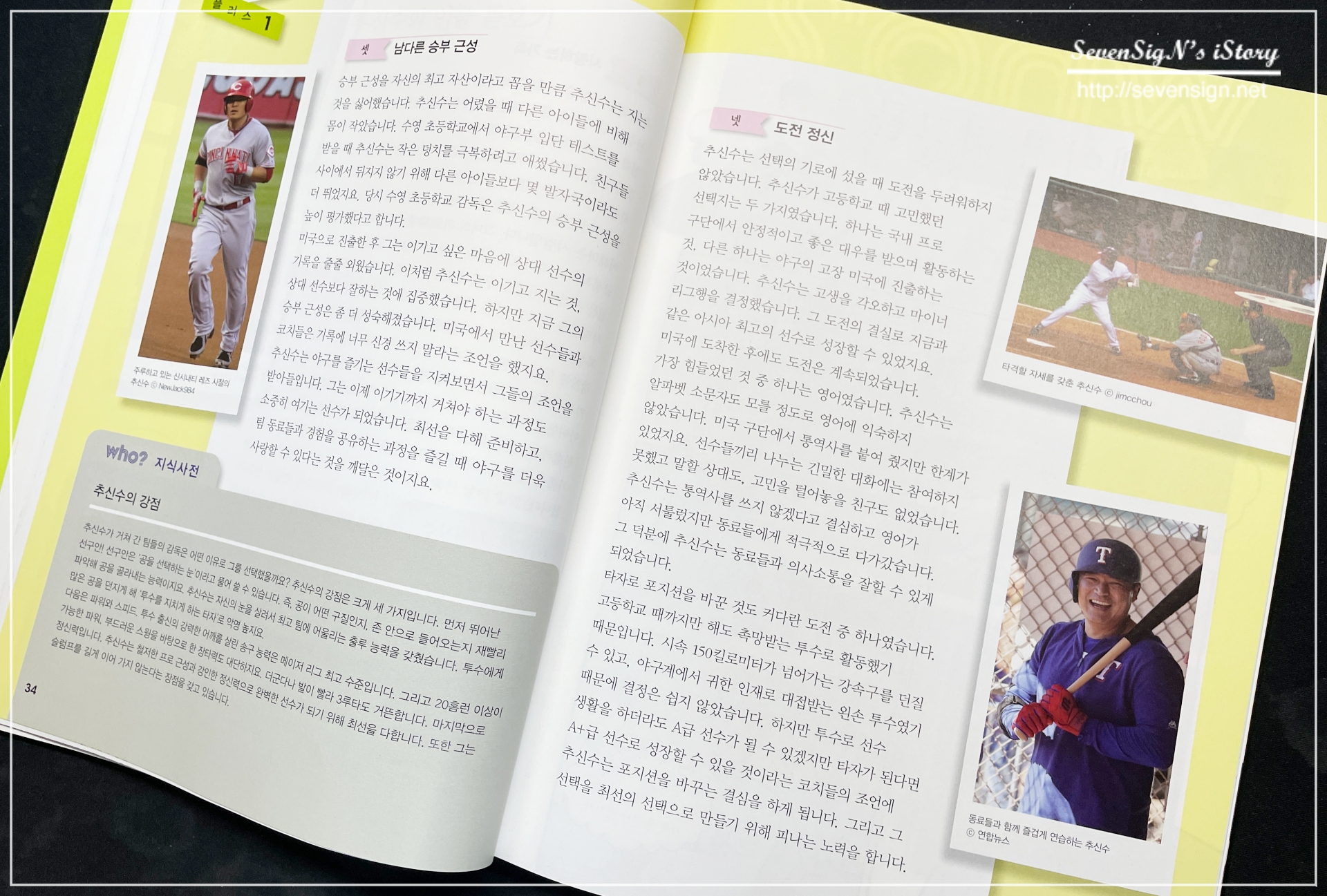 이런 내용으로 추신수 선수에 대해 좀 더 깊이 알수 있도록 하고 있어서