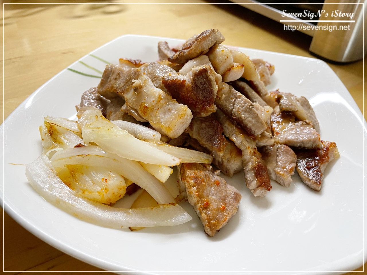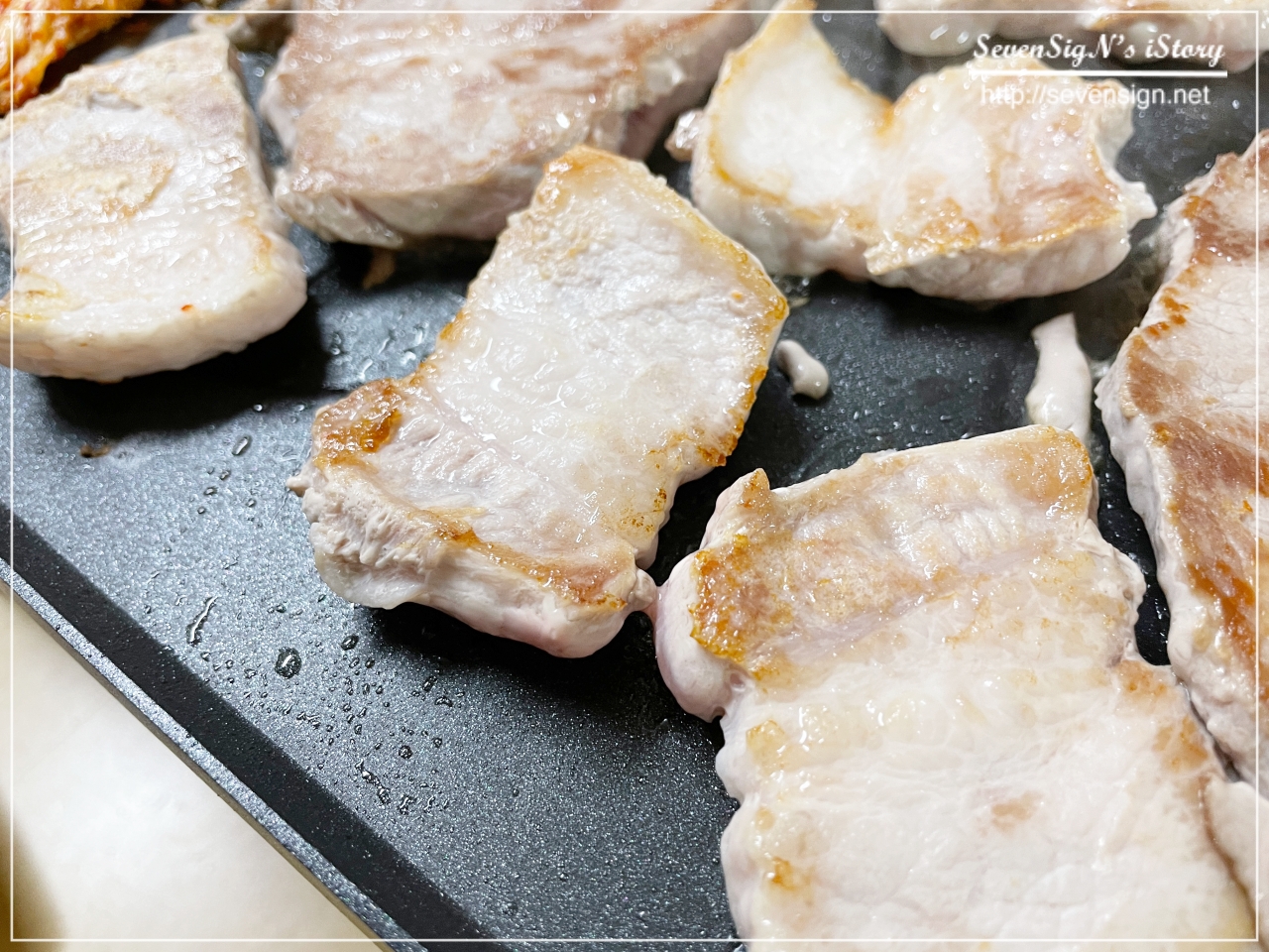 다음 삼겹살도 고민없이 고기앞이네요 ㅎ 이정도 비주얼이면 맛이 없을 수 없다는게 학계의 정설(?)이라는 ... 'ㅡ'
