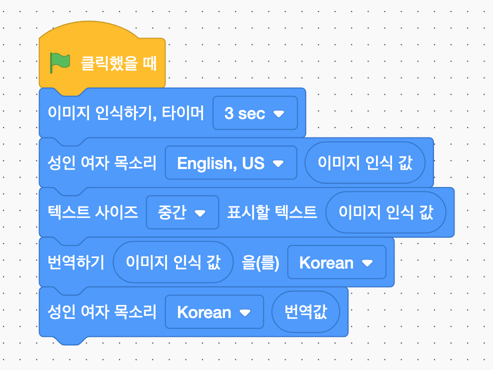이미지를 인식하면 인식값을 말해주고 한국어로 번역해서 한글로도 말해주는거였죠 ㅋ